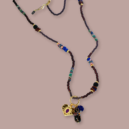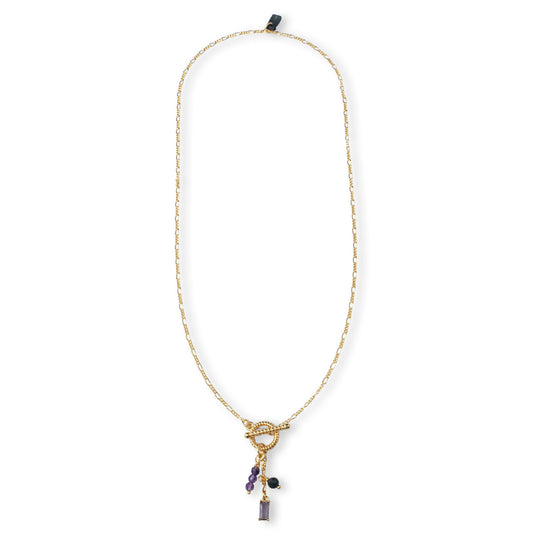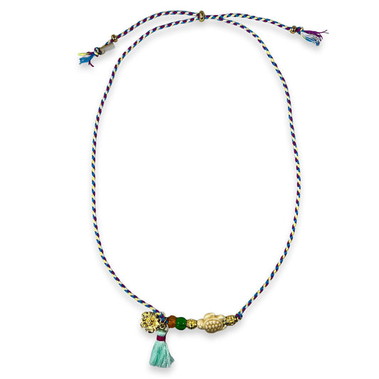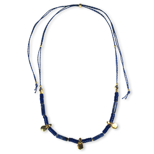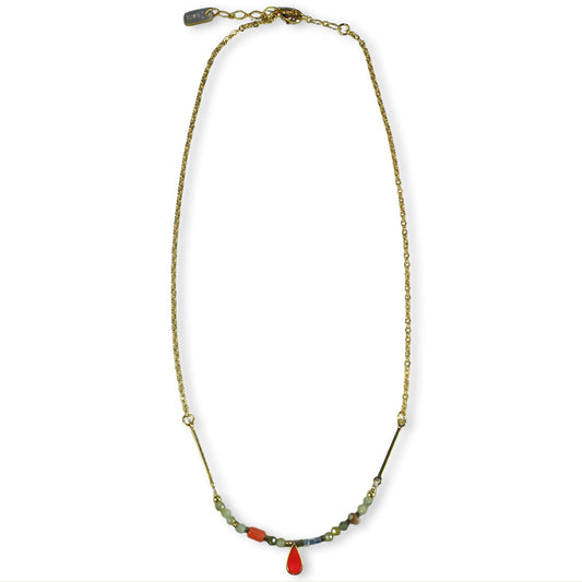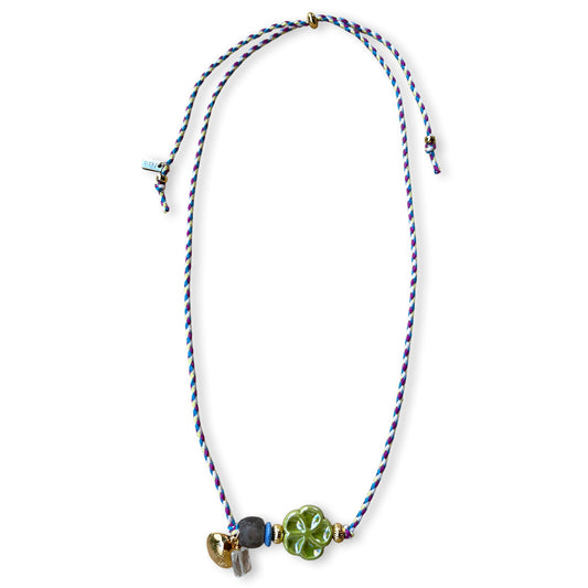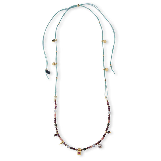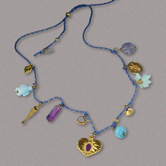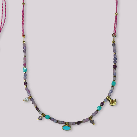 Nona Halskette mit Halbedelsteinen und kleinen Charms fuchsia/blau