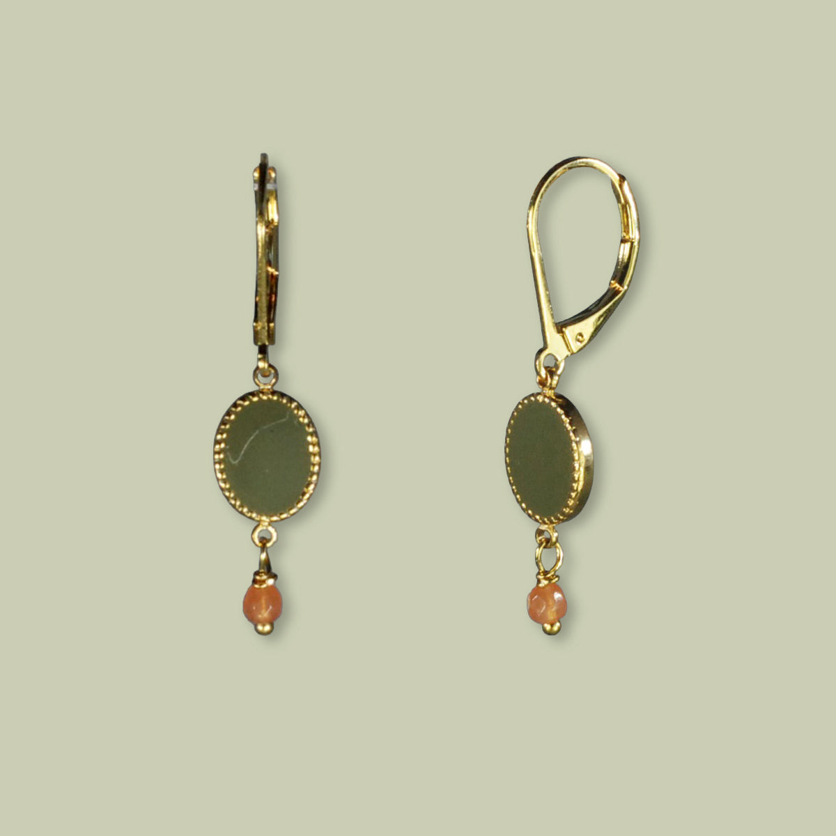 Nona Ohrringe mit verschiedenen Elementen, Halbedelstein grün