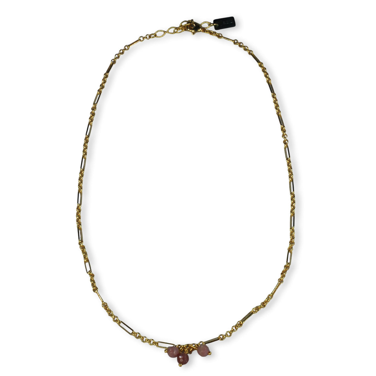 Diese Ohrringe haben ein elegantes und raffiniertes Aussehen. Sie bestehen aus vergoldeten Ohrhaken. Daran hängen drei facettierte Erdbeerquarzperlen. Darüber hinaus gibt es eine kleine quadratische Amazonitperle.