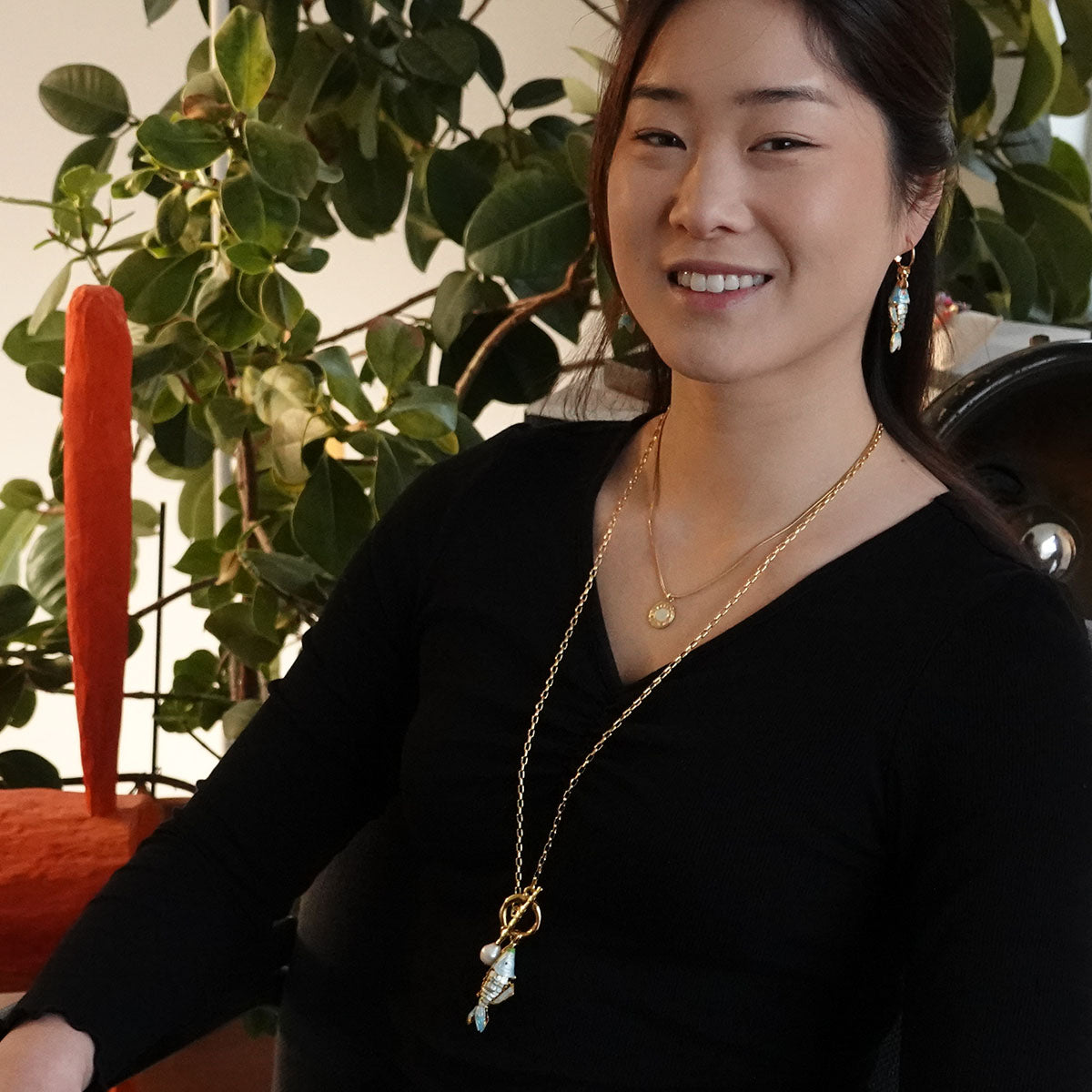 Reina necklace with enamelled fish and pearl light blue