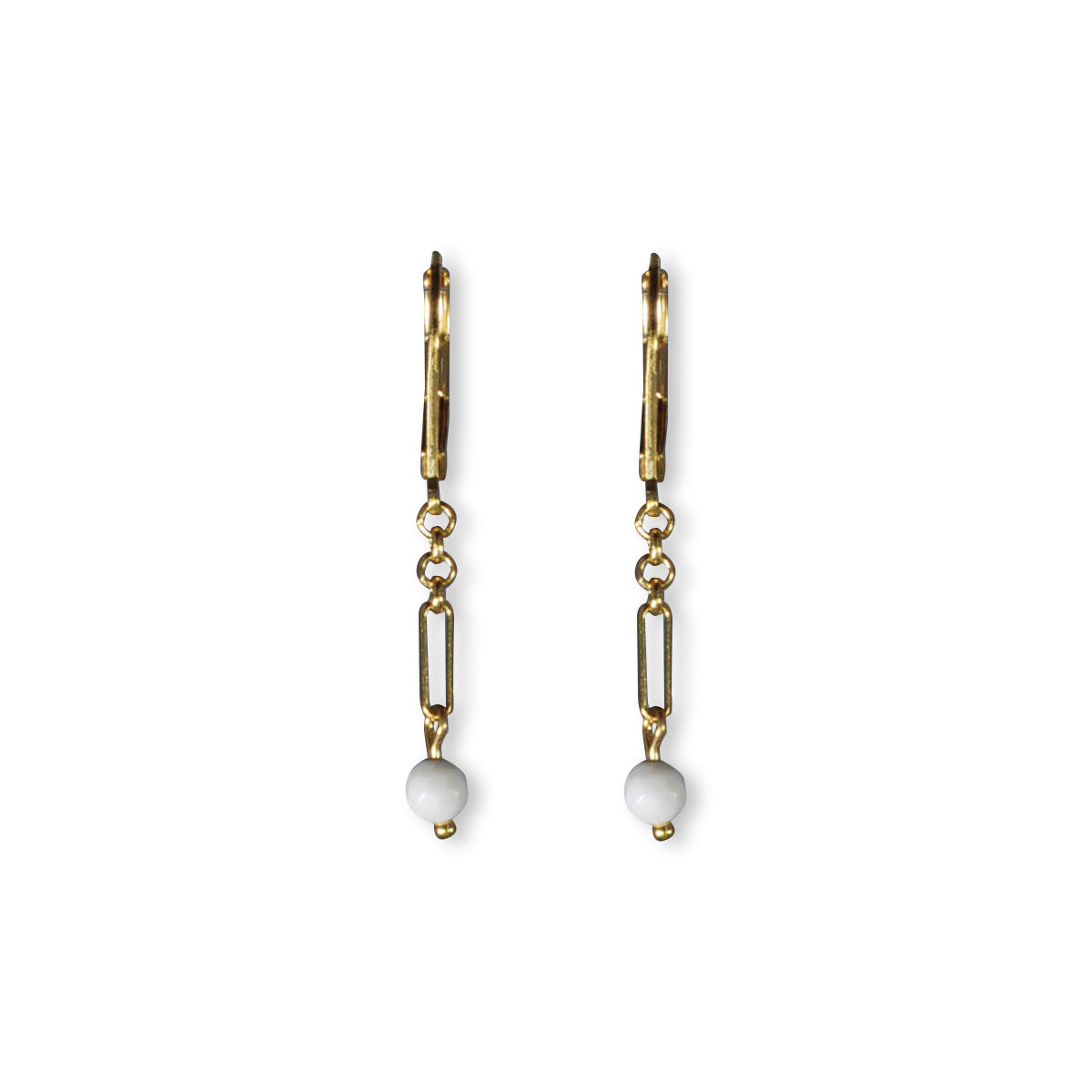 Deze oorbellen hebben een elegante en verfijnde uitstraling. Ze bestaan uit een gouden gold plated oorhaakjes. Daaraan hangt een gefacetteerde semi-precious kraaltje.